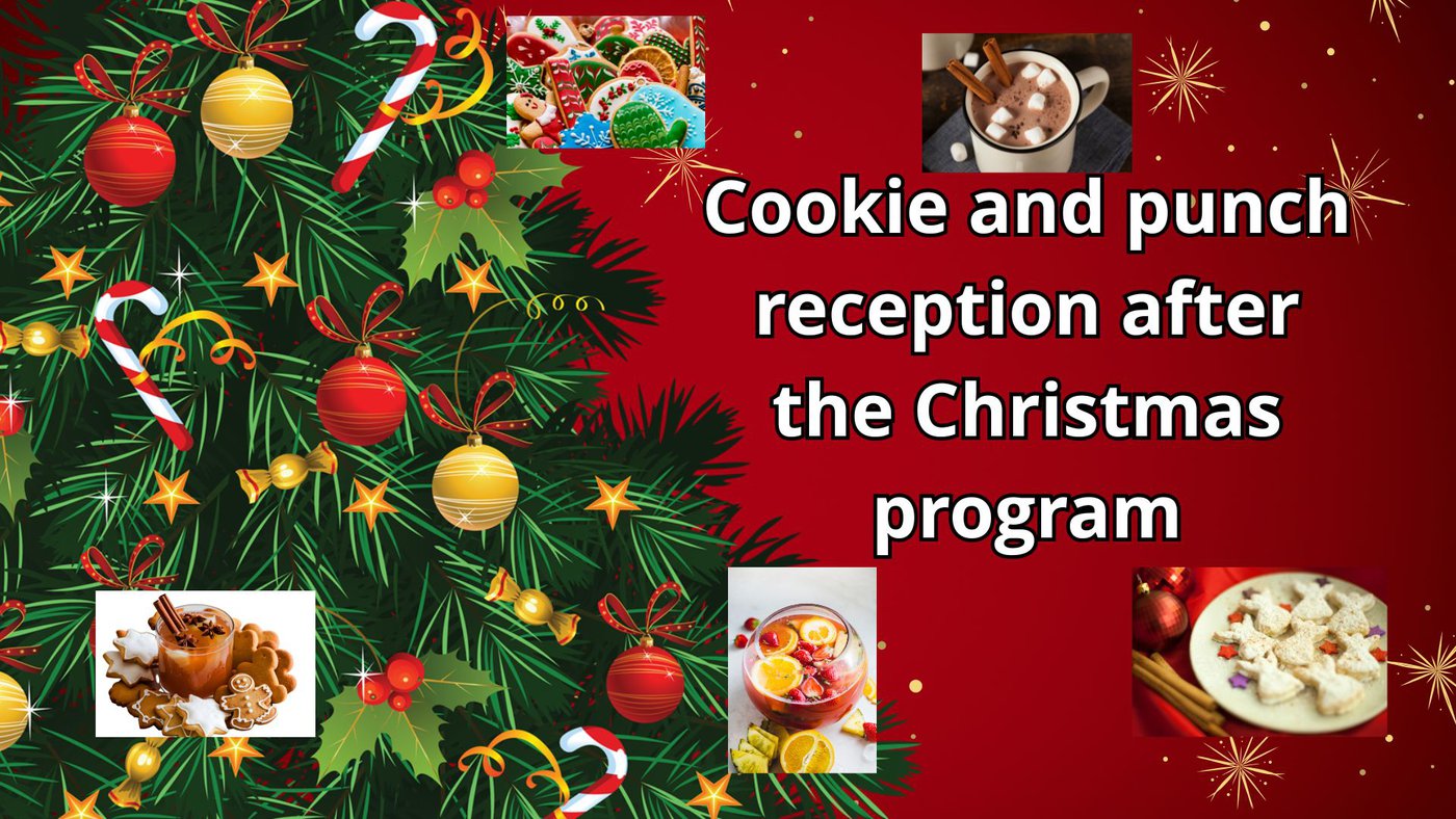 We have come to look forward to the cookie and punch reception after the program. It is such a wonderful time of fellowship and fun. We are asking that everyone bring in at least one dozen cookies to share with others. Our own Sister Angela Lowe will be making one of her famous punch and I believe there will be hot chocolate too.